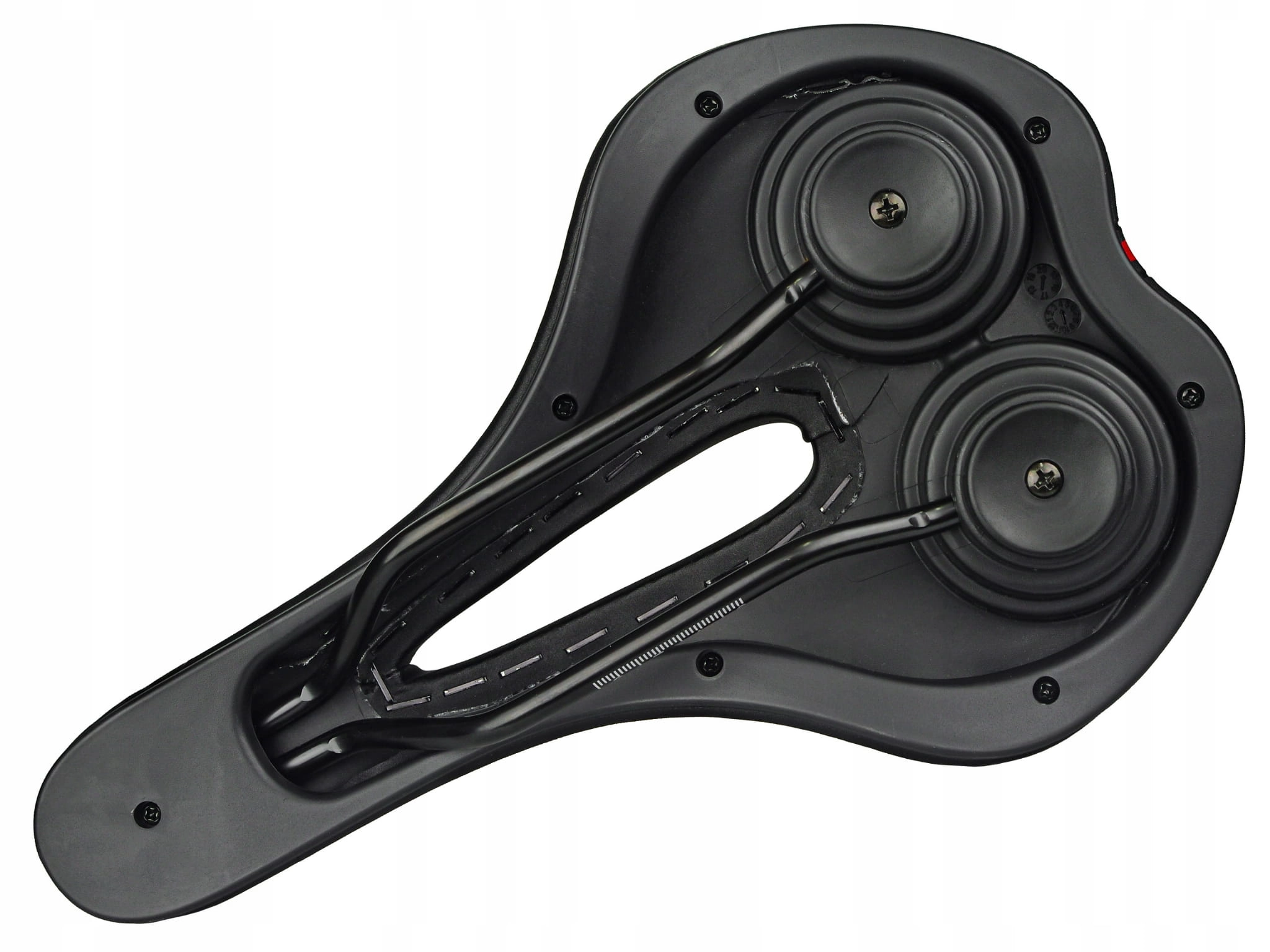 - Strefowa konstrukcja – pięć ergonomicznych stref poprawia dopasowanie siodła do ciała i zwiększa wygodę nawet podczas długich, intensywnych przejazdów.